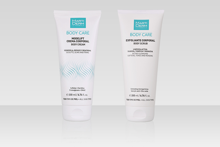 And because at MartiDerm we think that taking care of yourself should be enjoyable, we propose a duo that will leave your skin looking soft and smooth and give you an immense feeling of pleasure. It's a pack with two of our star body products: BODY SCRUB and MODELIFT BODY CREAM.